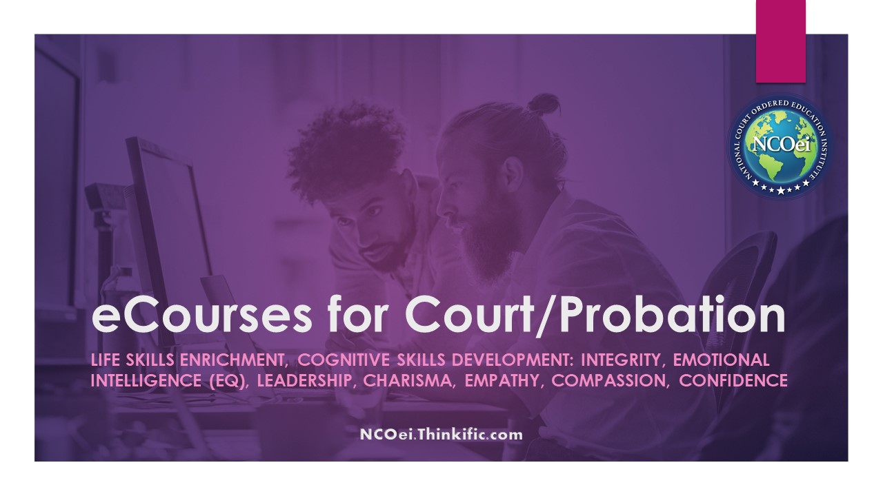 NCOei National Court Ordered Education Institute, LLC is an American By God Integrity online education certification company from which students can access certified ecourses and certified ecoaching sessions for use in court/probation or for personal development. Val Catt of NCOei created the first American decision-making/impulse control course back in 2013. In 2015, Val Catt's online courses were accepted by the Harris County JP TRIAD Court Program. Today, Val's courses are used in thousands of courts across the Nation. Rehabilitative psychoeducation content includes online rehabilitation and mental health resources including educational websites, talks, presentations and lectures pre-recorded by experts in various legal, mental health and rehabilitation fields as well as question, answer, feedback, survey sessions and online or live coaching with a master rehabilitation coach.